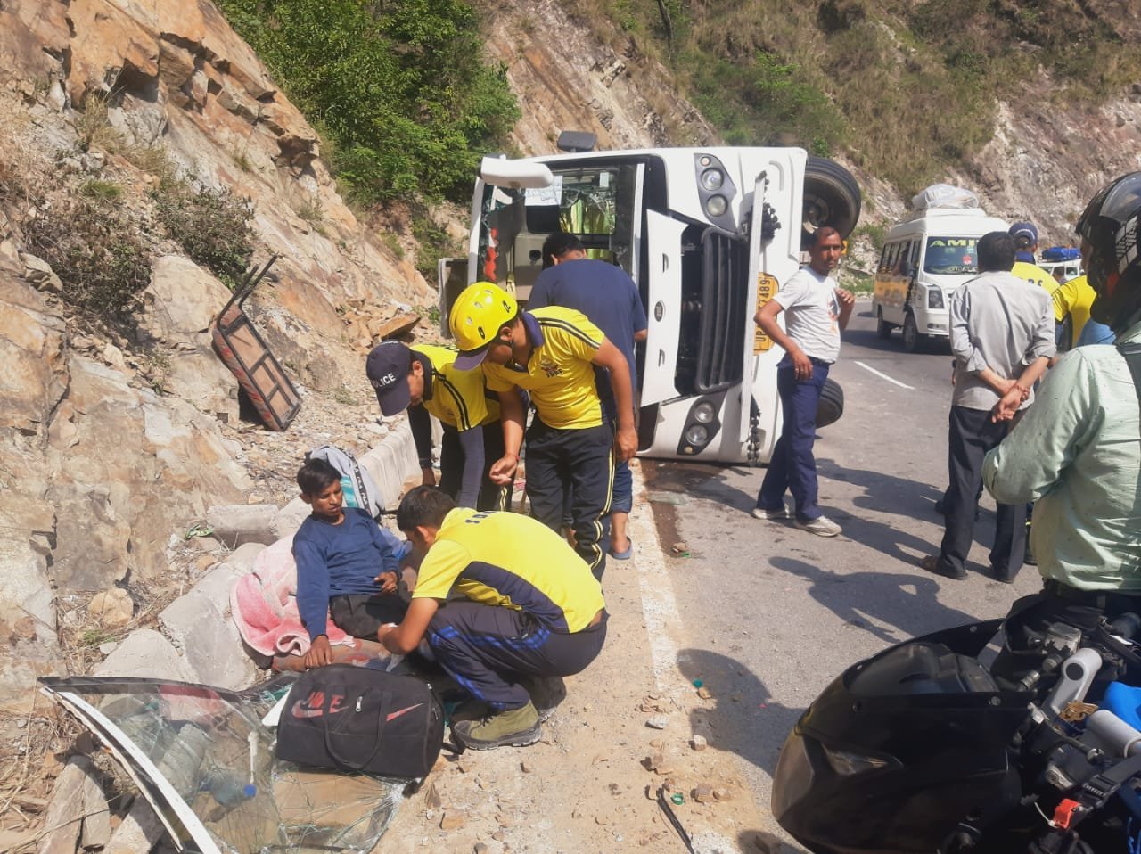 बदरीनाथ हाइवे पर यात्रियों से भरी बस सड़क पर पलटी