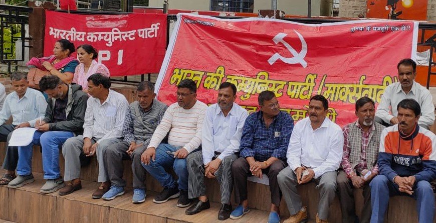 आपदा प्रभावितों का आंकलन कर मुआवजा देने व अवैध अतिक्रमण के नाम गरीबों को भूमि से बेदखल करने को लेकर वाम मोर्चा ने दिया धरना