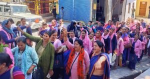 चमोली। आशा फैसिलिटेटर संगठन, आशा स्वास्थ्य कार्यकत्री, आशा डिस्टिक काॅओडिनेटर और आशा ब्लाॅक काॅओडिनेटर संगठन की ओर से मंगलवार को चमोली जिला मुख्यालय गोपेश्वर की सड़कों पर अपनी मांगों को लेकर उतरी। जिलेभर से पहुंची आशा कार्यकत्रियों ने गोपीनाथ मंदिर से जिलाधिकारी कार्यालय पर जुलूस निकाल कर प्रदर्शन किया। जिलाधिकारी कार्यालय पहुंचने पर पुलिस ने उन्हें जिलाधिकारी कार्यालय के परिसर के अंदर जाने से रोकने का भरसक प्रयास किया लेकिन महिला पुलिस न होने के कारण पुरूष जवानों को आशा कार्यकत्रियों को रोकने में काफी पसीना बहाना पड़ा। बावजूद इसके पुलिस के जवान आशाओं को रोकने मे सफल न हो सके और आशाऐं गेट को धक्का मार कर परिसर के अंदर घूस गई और सरकार और प्रशासन के विरोध में नारेबाजी करते रहे। इस बीच एक आशा कार्यकत्री बेहोश भी हो गई थी। आशा कार्यकत्रियों का आरोप है कि जिलाधिकारी उनसे मिलने अपने चैंबर से बाहर नहीं आये। जबकि आशाऐं पूरे जिले भर से अपनी मांगों को लेकर डीएम को मिलने पहुंचे थे।