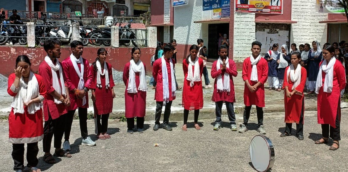 गोपेश्वर (चमोली)। चमोली जिला मुख्यालय गोपेश्वर के महाविद्यालय मंगलवार को एक नाटक का मंचन किया गया। अंग्रेजी विभाग, गणमंग थियेटर ग्रुप एवं यूथ क्लब गोपेश्वर के संयुक्त तत्त्वाधान में आयोजित नाटक के माध्यम से देश में महिलाओं के प्रति बढ़ रहे अपराधों को रोकने के लिए जनजागरण किया गया।