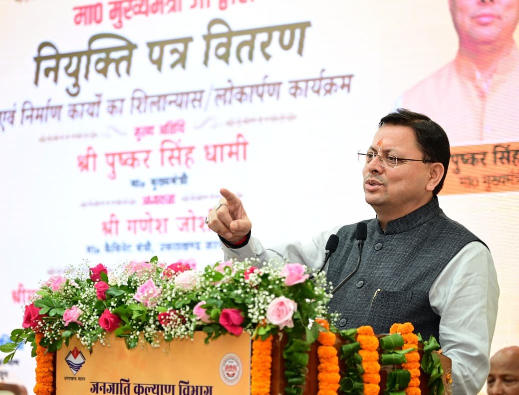 देहरादून। मुख्यमंत्री पुष्कर सिंह धामी ने शनिवार को मुख्यमंत्री आवास स्थित मुख्य सेवक सदन में जनजाति कल्याण विभाग के अन्तर्गत संचालित राजकीय आश्रम पद्धति विद्यालयों में चयनित 15 सहायक अध्यापकों को नियुक्ति पत्र वितरित करने के साथ ही 15 करोड़ रुपए से अधिक लागत की विभिन्न विभागीय निर्माण योजनाओं का लोकार्पण व शिलान्यास किया।