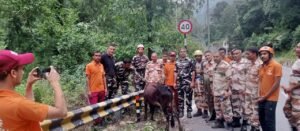 गोपेश्वर (चमोली)। चमोली जिले के बगोली गांव में पिंडर नदी के तट पर फंसी गाय को आईटीबीपी, एसएसबी और डीडीआरएफ की संयुक्त टीम ने रेस्क्यू कर लिया है। टीम ने यहो दो दिनों तक कड़ी मशक्कत कर गाय को नदी तट से निकल लिया है।