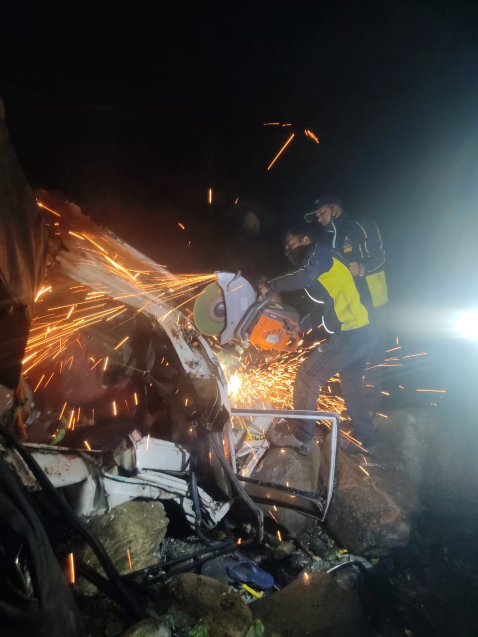 एसडीआरएफ टीम ने खाई में उतरकर कड़ी मशक्कत करते हुए कटर के सहायता से वाहन के कई हिस्सों को काटते हुये और क्रेन के मदद से दोनों शवों को बाहर निकालकर जिला पुलिस के सुपर्द किया गया। वाहन में सवार सभी लोग रतूड़ा के निवासी थे।